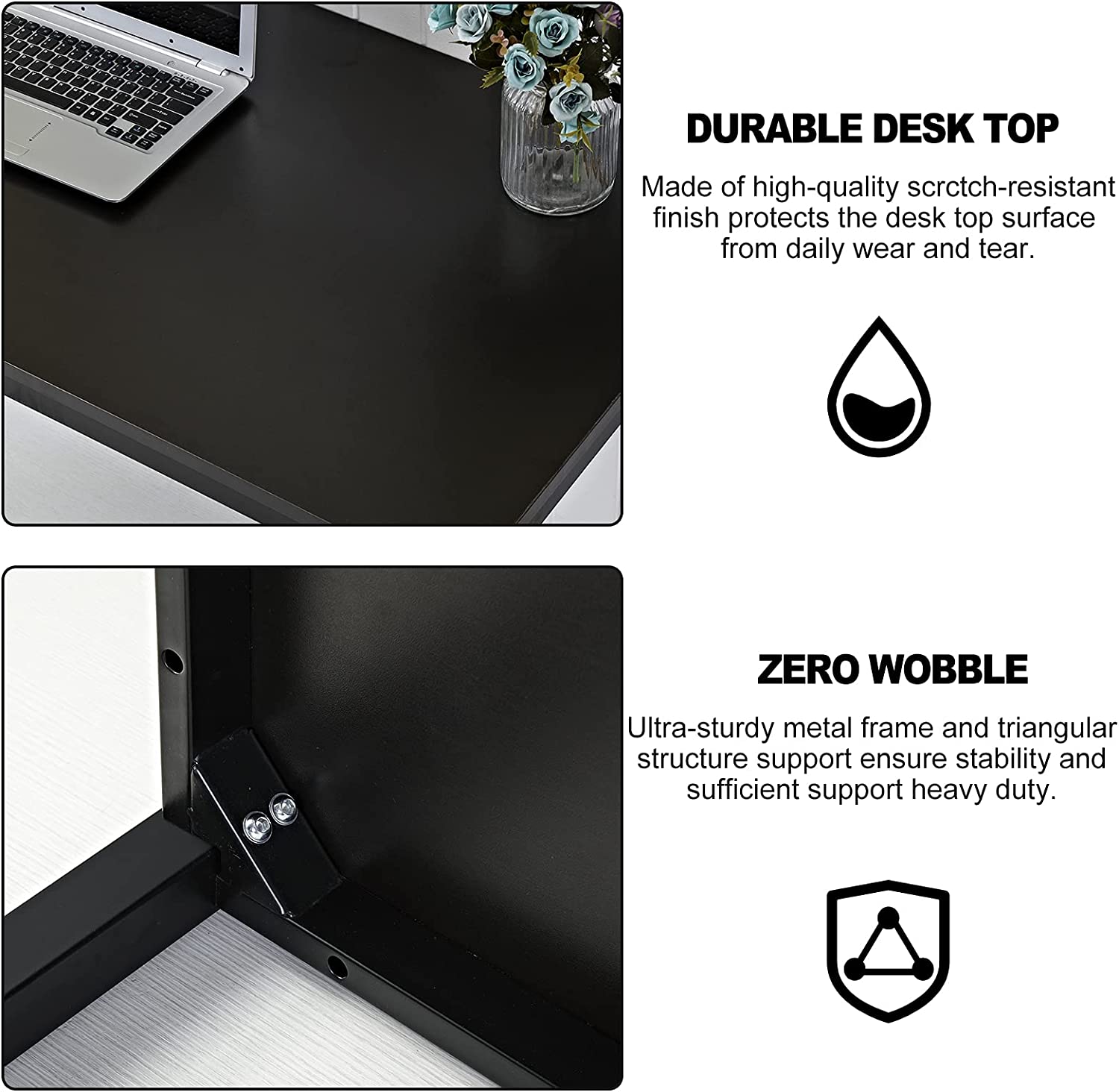 - Main material: This writing table frame is built with high-strength, thick tubing steel that is powder coated for a perfect finish. And the table top surface is 18mm thick, high resistance on scratch & friction.