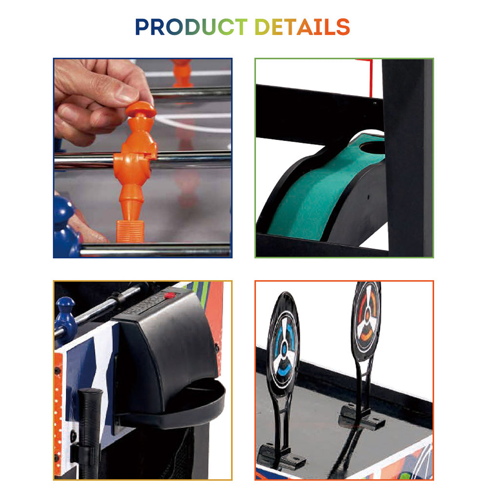 Features:- *Multi-Function Table: it features a foosball table, pinball soccer, mini-golf, and target shooting. Easy to convert from one tabletop to another.