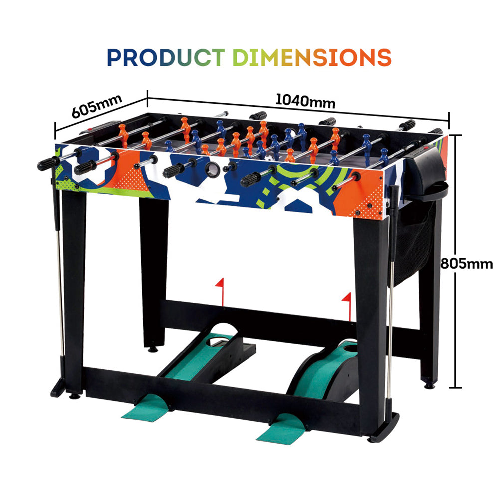 This is a multi-function table including a foosball table, pinball soccer, mini-golf, and target shooting. It is great to save room and provide marvellous fun at home! Multiplayer game table for parent-child interaction or hanging out with friends, you can experience the football scene without leaving home, and enjoy the new fun of competition.