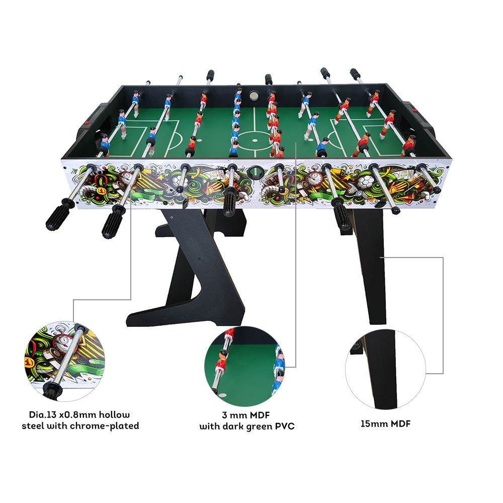 This foldable football table is a must have for your game room.You can experience the football scene without leaving home, and enjoy the new fun of competition.