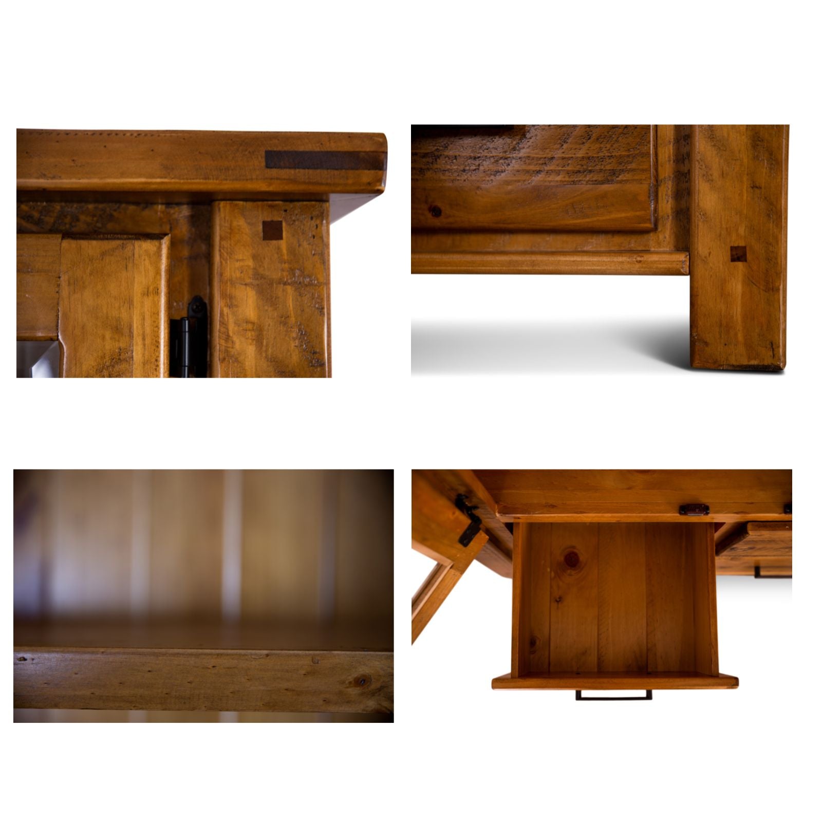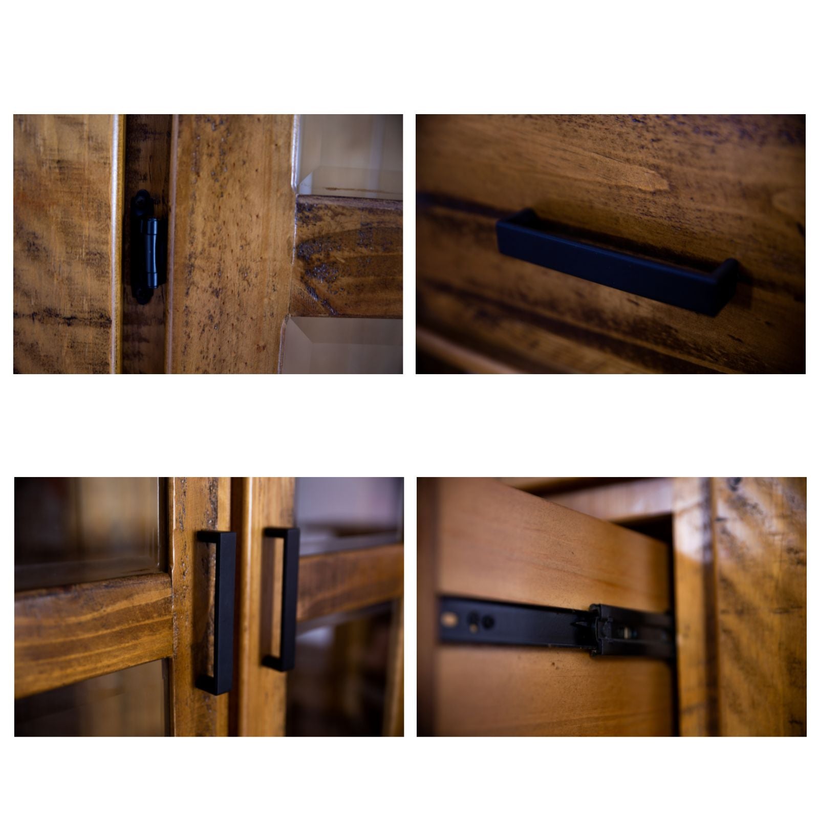 A display unit helps in beautifying your living area. Bring home this large display unit and showcase your decorative stuff magnificently. The display unit features plenty of storage space in 2 large glass doors on the upper part and 4 spacious drawers in the lower part. All doors and drawers have strong metal handles. It is designed in the modern rustic style that gives a beautiful look to your living area. The display unit's rustic oak finish complements almost any interior decor setting. The display unit is made of solid pine wood, harvested in a sustainable manner. The wood is well-known for its aesthetically pleasing appearance, strength, and durability. A one-year warranty is included with the fully assembled display unit.