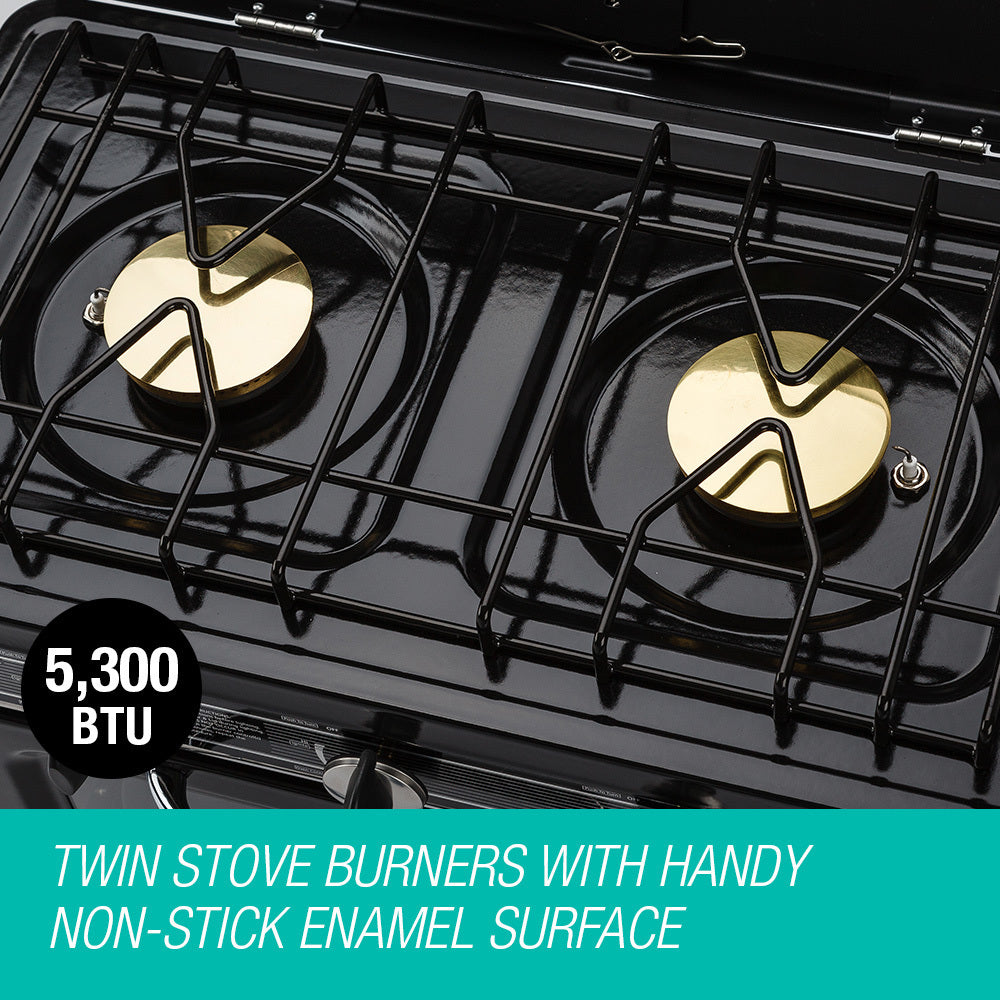 THERMOMATE 2 Burner Gas Portable Camping Oven Stove Combo, Grey