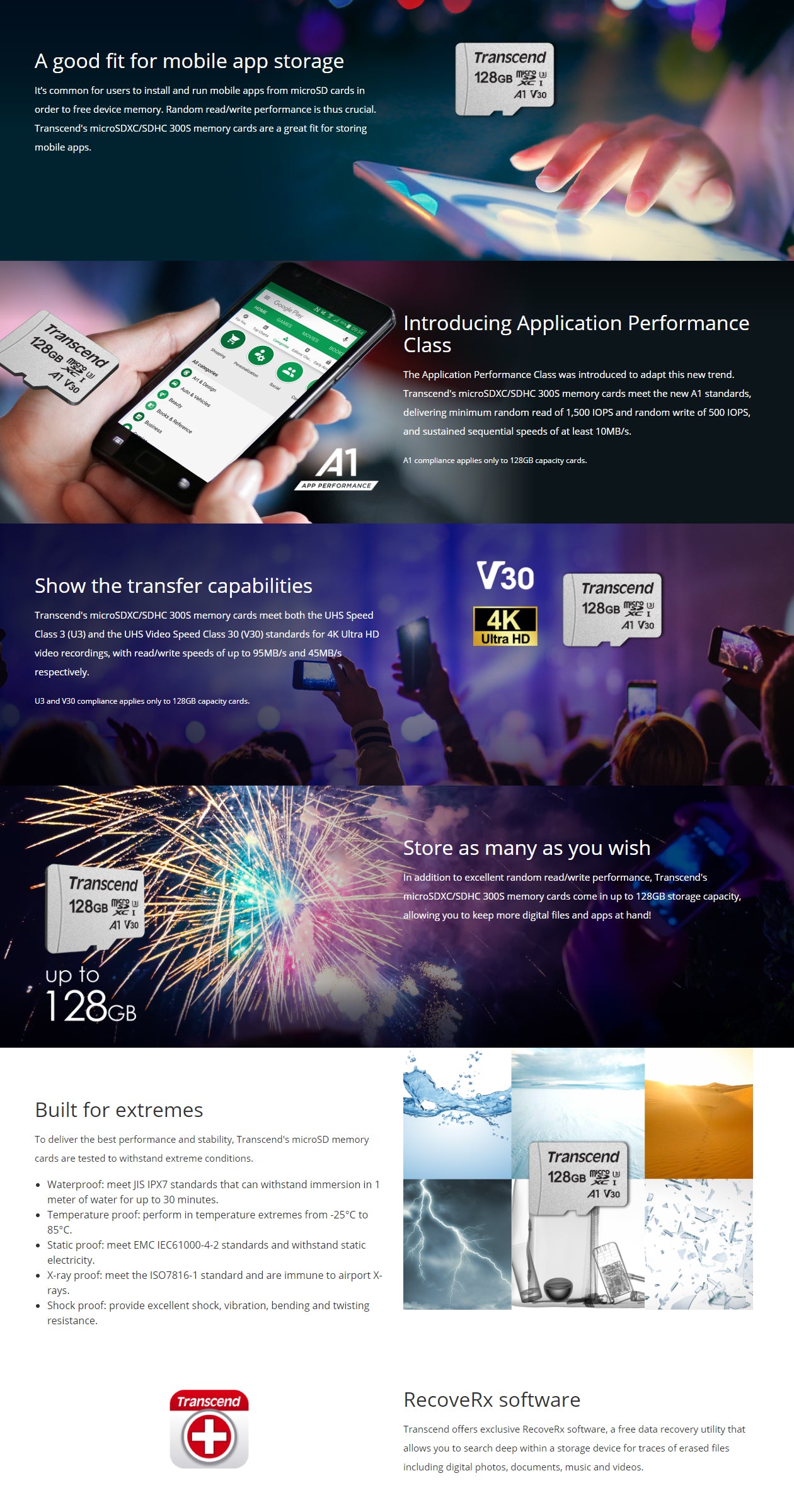 Want to save space on your mobile device by running apps from a memory card? Transcend's microSDXC/SDHC 300S cards are the right choice! Compliant with the latest speed class, the cards boast excellent random read/write speed, perfect for retrieving small pieces of data from random locations and speeding app launch time.
