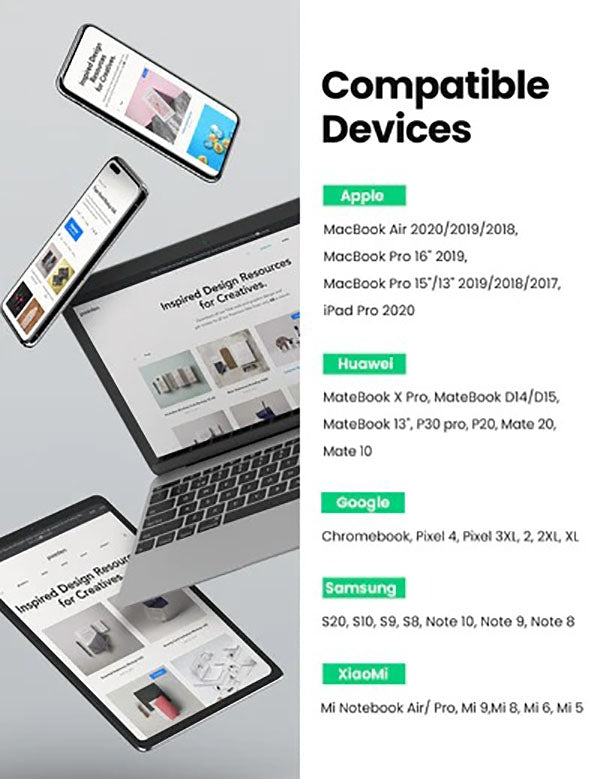Unlike the market's most USB C cable incapable of charging high power devices, UGREEN type c to type c cable can compatible seamlessly with Laptops(MacBook Pro 2021,etc), Cellphones(Samsung S21, Google Pixel, LG, etc.), Tablets(iPad Pro, etc.), Switch and more.