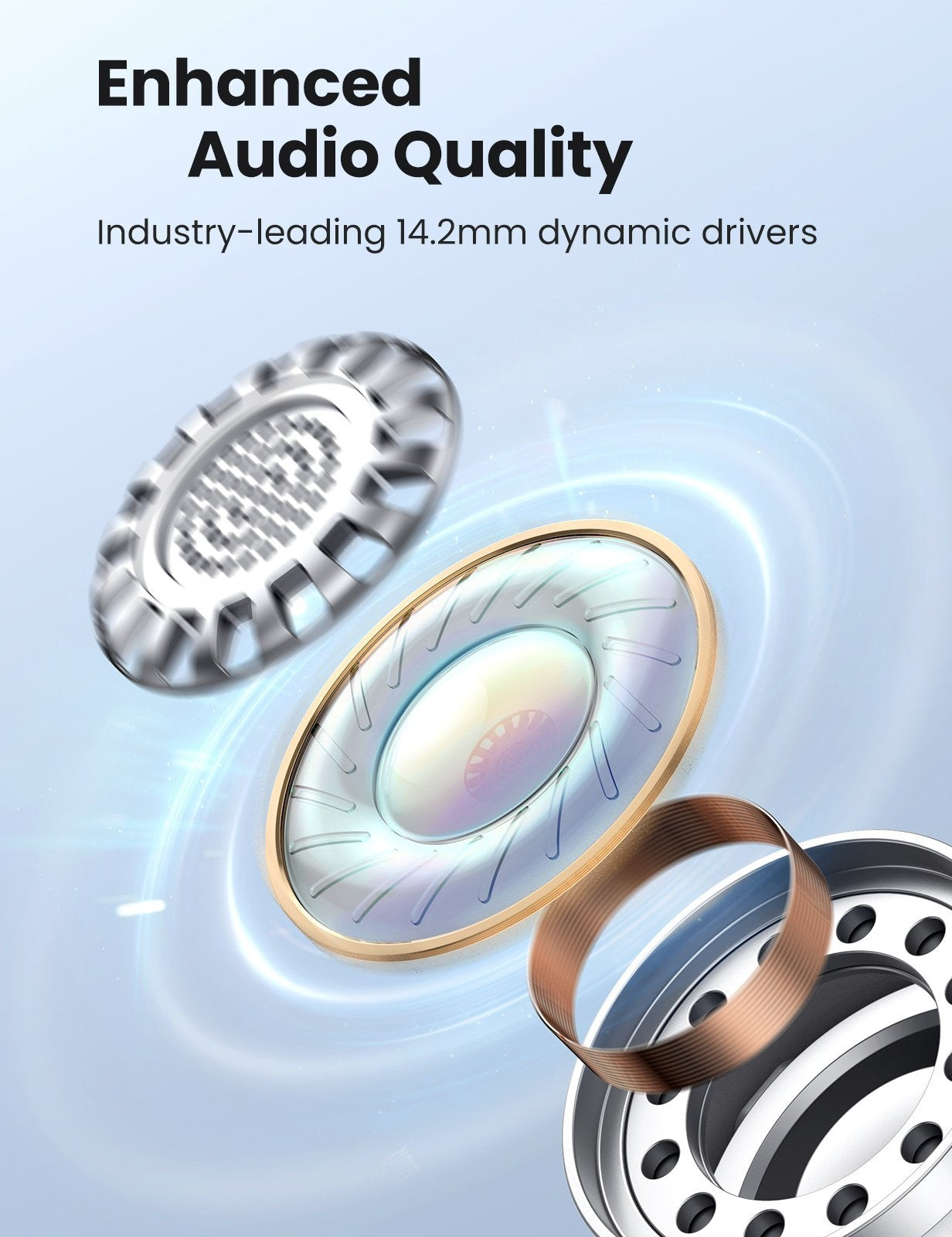 UGREEN Hitune T2 supports 4hrs ultra-long playtime from a single charge and extended to 20 hrs with the charging case. 15mins charging for the earbuds will allow 1 hour of listening.