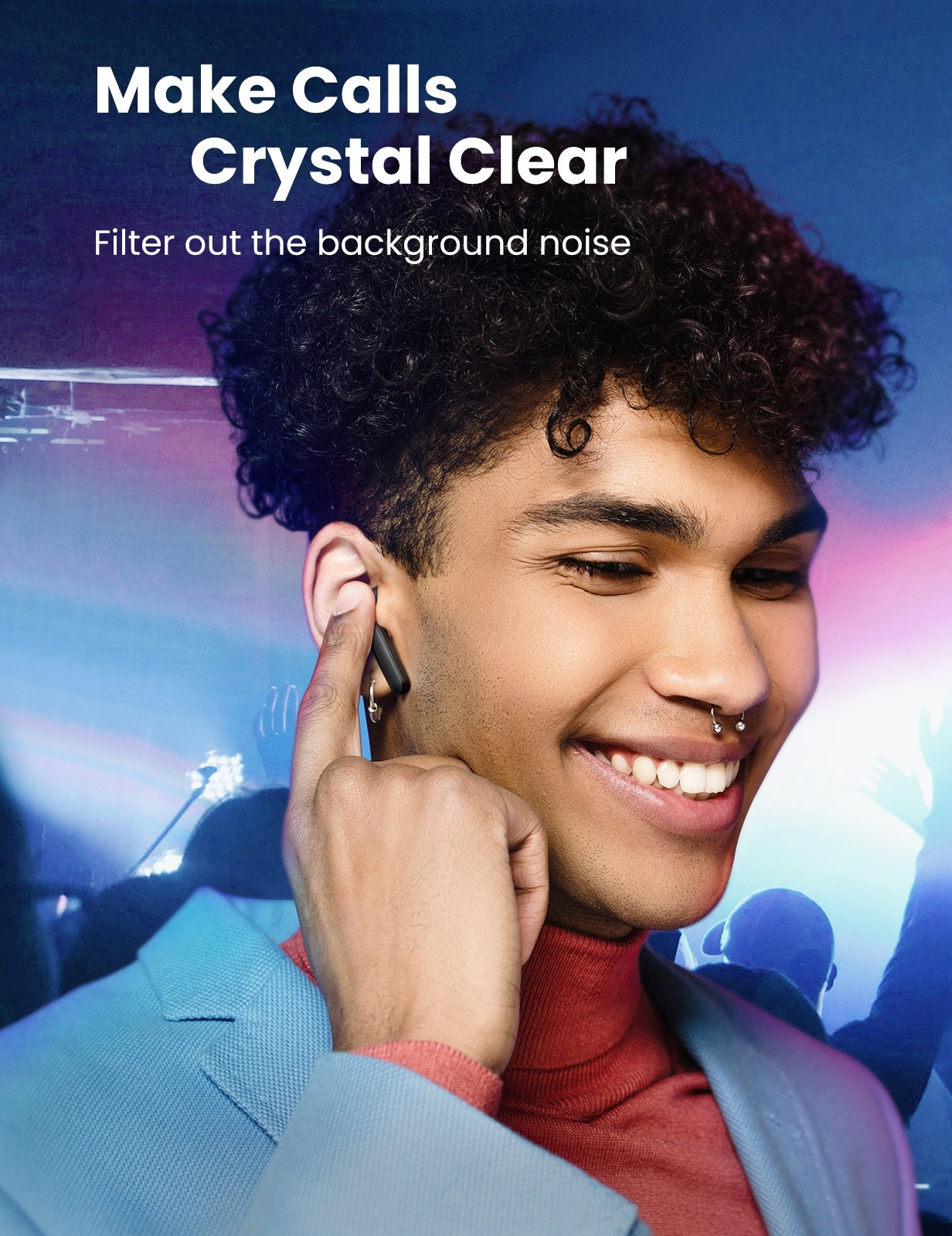 Each earbud comes with 2 advanced microphones, one effectively reduces the background noise and the other one picks up and enhances your voice, ensuring crystal-clear phone calls even in a noisy background.