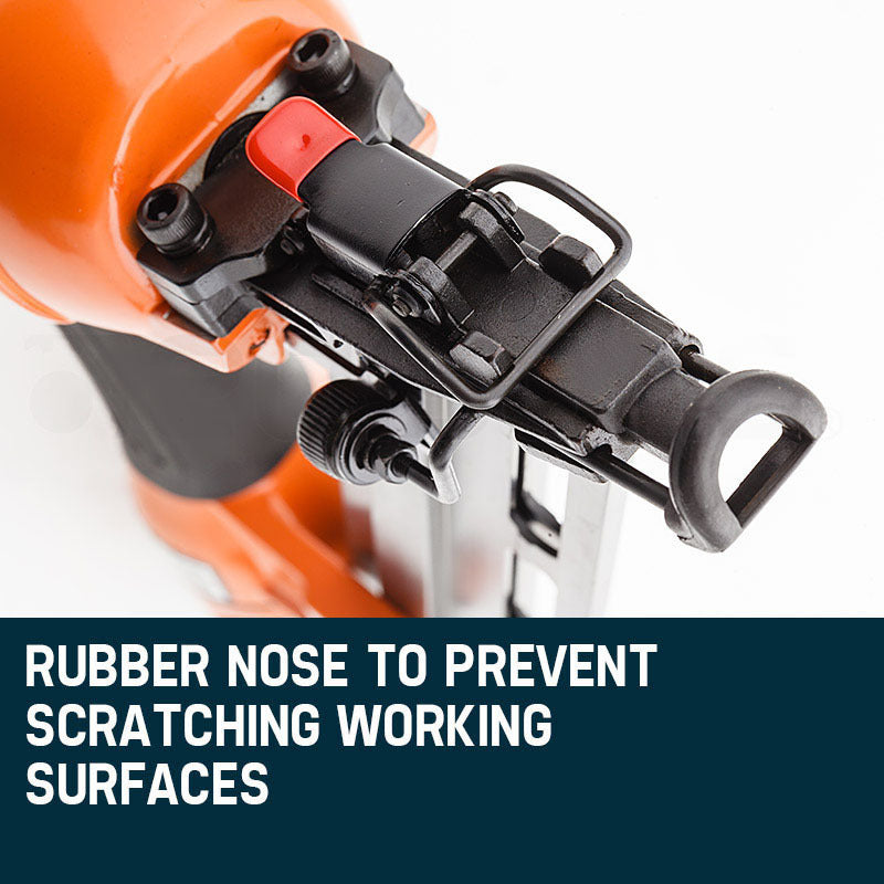 The CB400 Angled Finish Nailer is designed to serve as a classic all-rounder with all the bells and whistles. With a versatile 15 gauge 32-64mm nail range, you can tackle more jobs with less tools.The unique quick-load magazine makes it easy to know when you're just about out of ammo, but with a massive 100 nail capacity you needn't worry about constantly reloading - a fantastic feature for uninterrupted productivity! Should you experience any jams, the quick-release nozzle flicks open for direct access to the nail chamber. If you want to adjust the nail depth, there's a fine tuner conveniently located on the side of the gun.