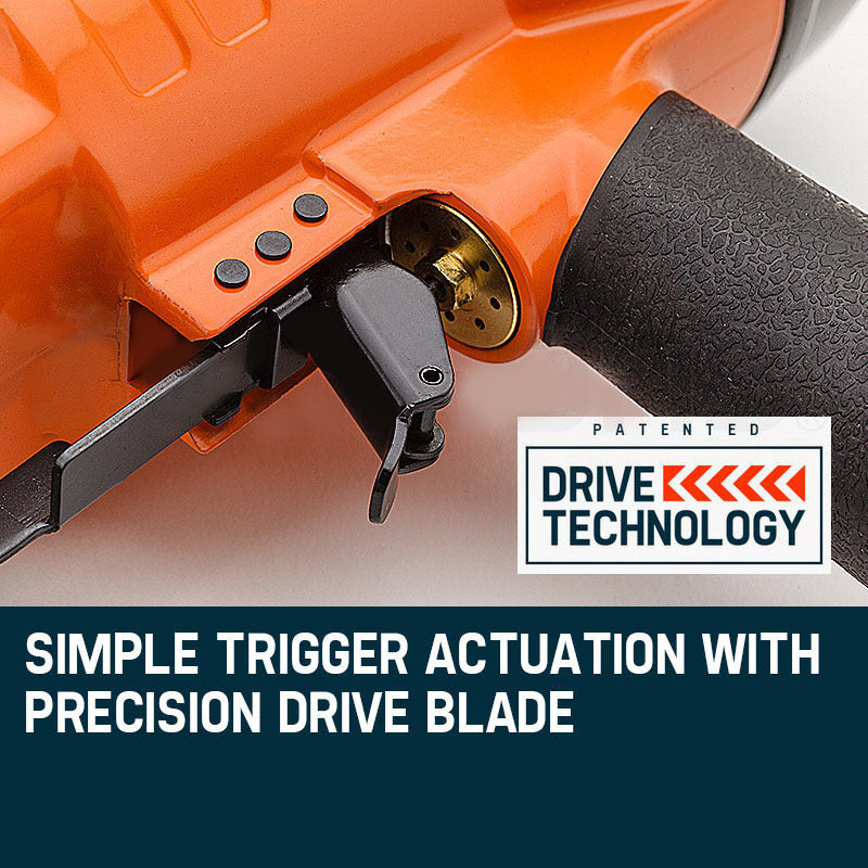 Plug and go with the standard ¼" NPT connection. Just hook up to an air compressor of 120PSI maximum and start firing. The lightweight aluminium body is balanced for ease of control and houses the oversized piston that allows you to shoot through the toughest of materials.