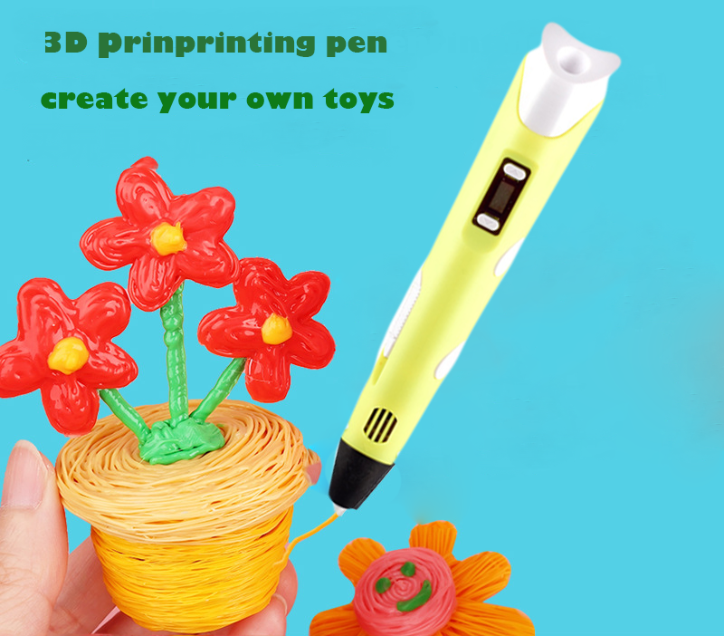 USB 3D Printing Pen Drawing Pen Printer +LCD Screen +3 Free Filaments Kid Gift Yellow