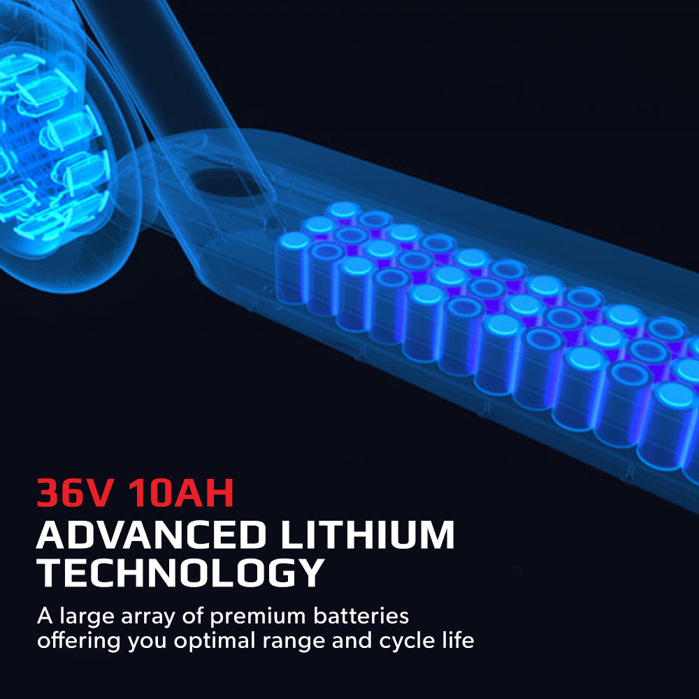 At the heart of the VALK® Carbon+™ Electric Scooter is its premium-grade 36V 10Ah lithium battery array which offers a generous range and has an excellent cycle life.
