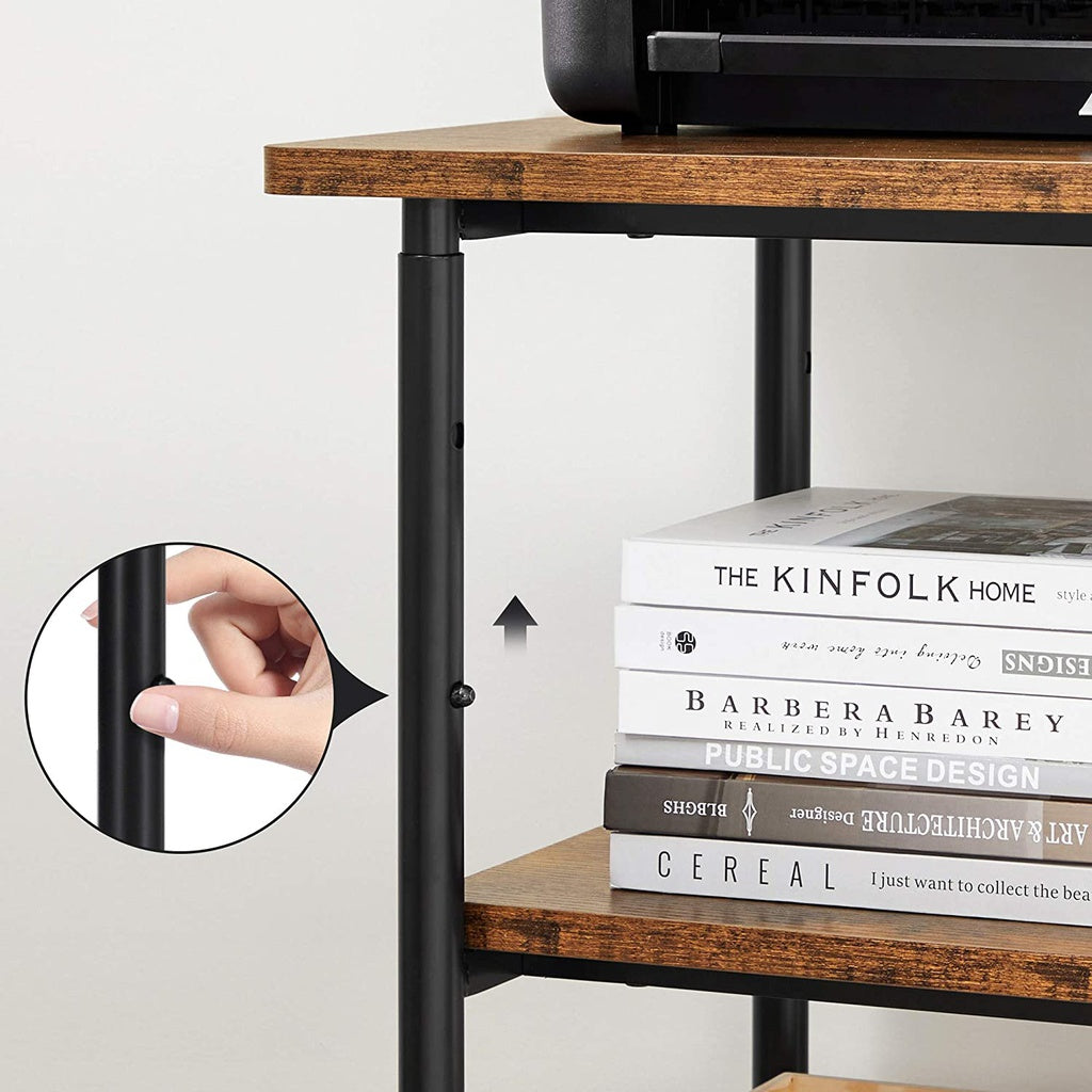 VASAGLE 3-Tier Machine Cart with Wheels and Adjustable Table Top Rustic Brown and Black OPS003B01
