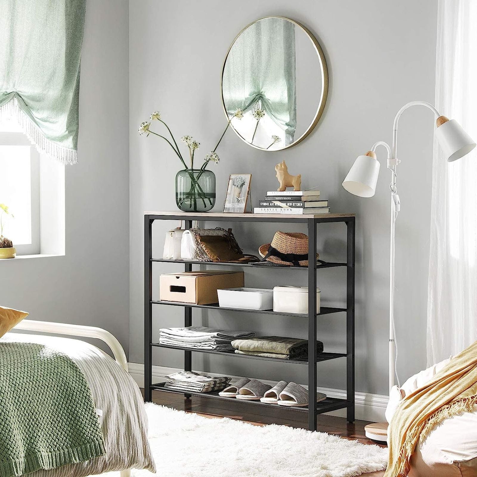 VASAGLE INDESTIC Shoe Rack Organizer with 4 Mesh Shelves Industrial Greige and Black