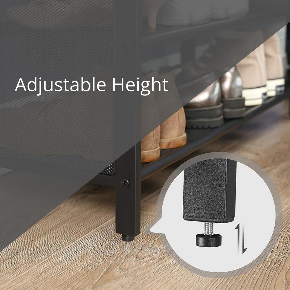 equipped with adjustable feet, this shoe rack can withstand a spirit level test even on uneven floors. In addition, tiles, parquet etc. Protected from scratches.