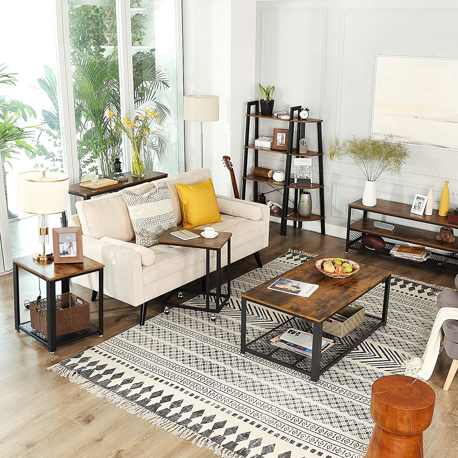 Industrial Design: Featuring a rustic brown surface, black steel frame, and eye-catching metal mesh accent, this coffee table with an industrial vibe will add a dash of character to your living room