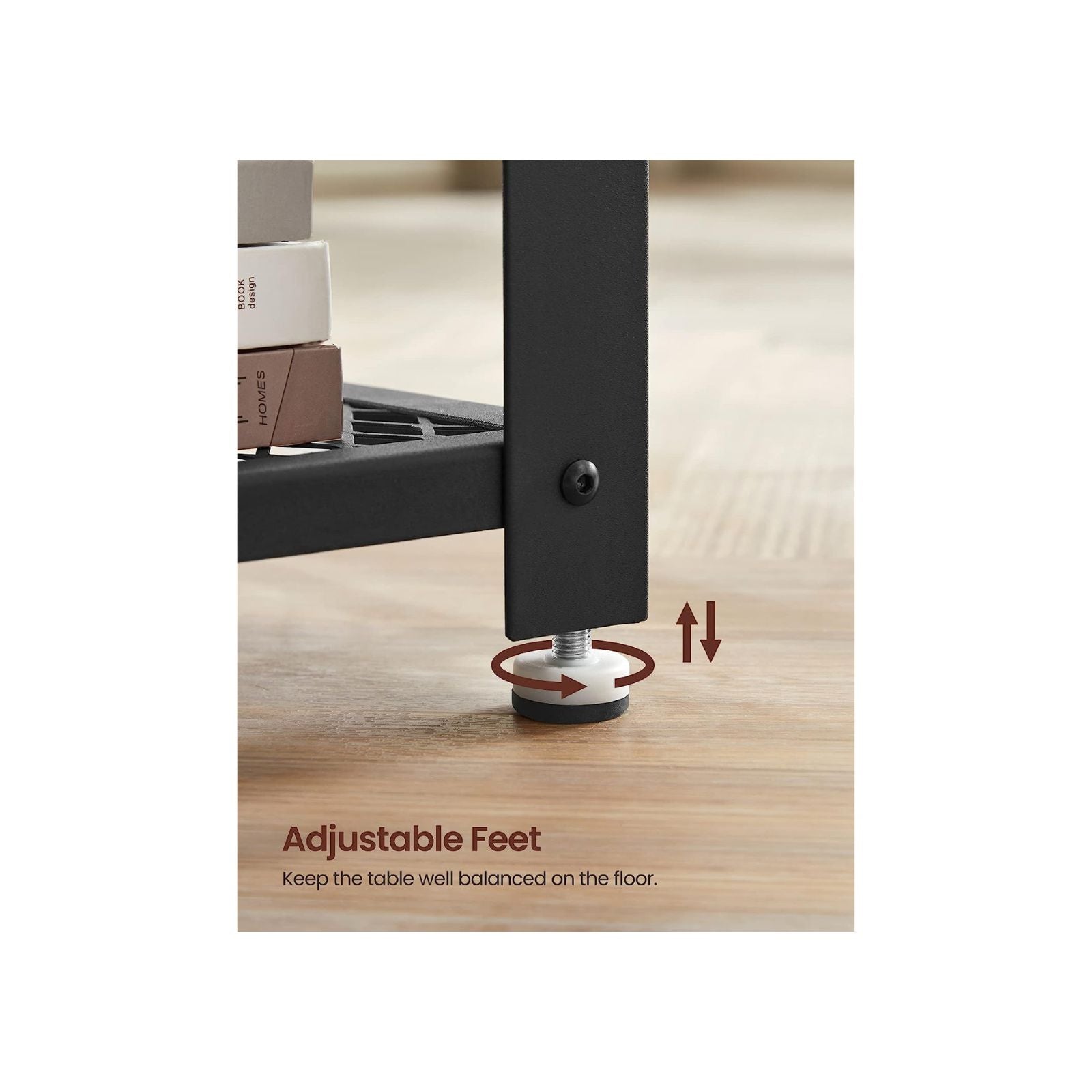 - Perfectly Balanced: The adjustable feet compensate for slight unevenness in the floor and prevent this table from wobbling.