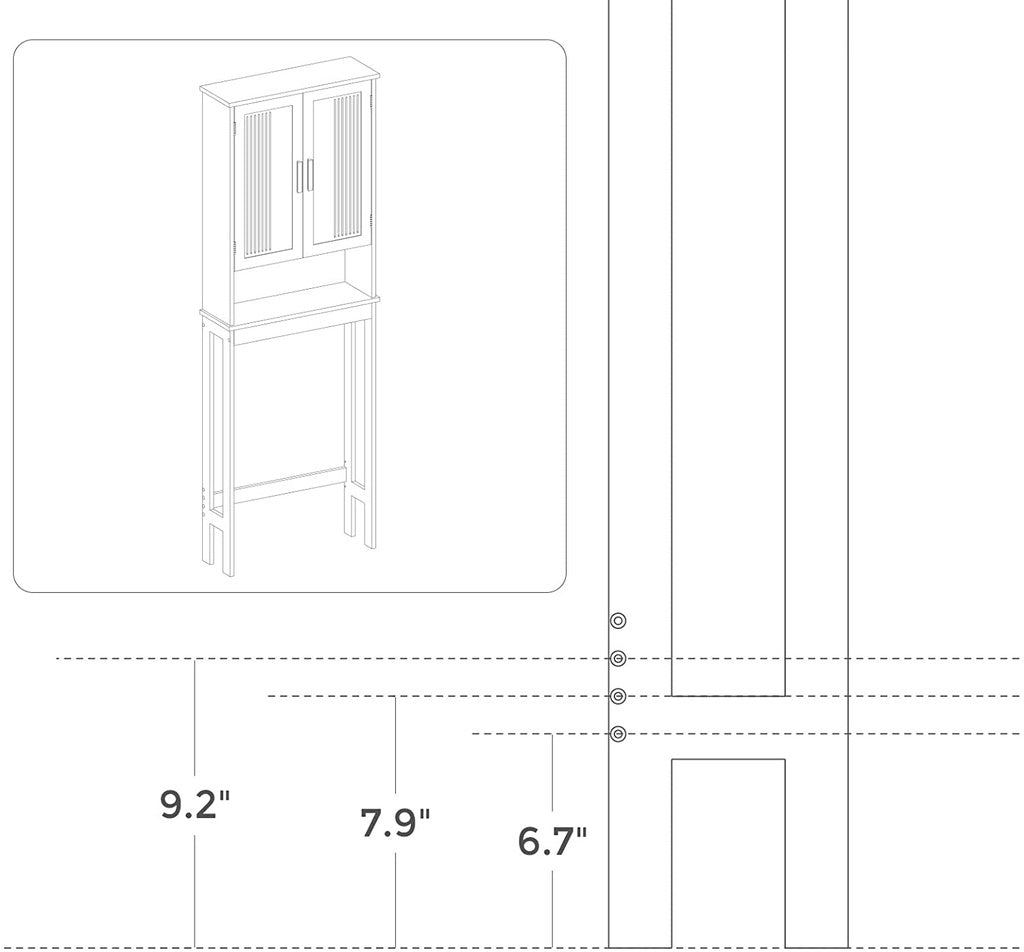With a simple structure and detailed directions, this over-the-toilet storage unit can be assembled before you know it; 2 types of anti-tip kits come with this storage cabinet (for studs or drywall) for extra stability