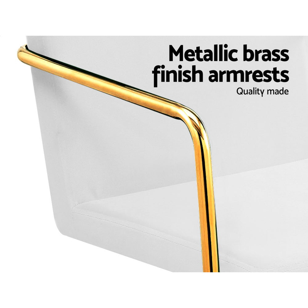 Sit in effortless style with the Caraway office chair. Luxurious velvet upholstery sits atop a sturdy metallic brass base to give you an elegant chair that is built to last. Not only stylish, it is also supportive and functional with 360 degrees rotation, tilt tension adjustment, height adjustment, a 120kg weight capacity, and five smooth ball shaped castor wheels. Round out the look with our metallic brass finished armchairs that allow you to sit back and survey your work. This chair is perfectly suited to your home or office, leaving an impact wherever it goes. Elevate your space with the Caraway office chair!