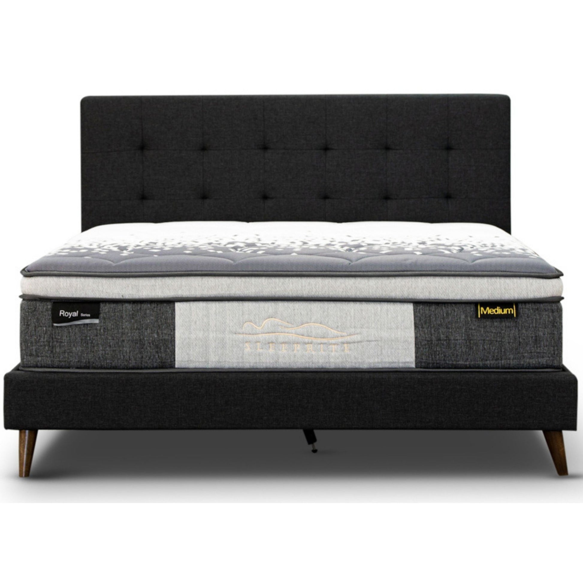 Volga Queen Bed Platform Frame Fabric Upholstered Mattress Base - Charcoal