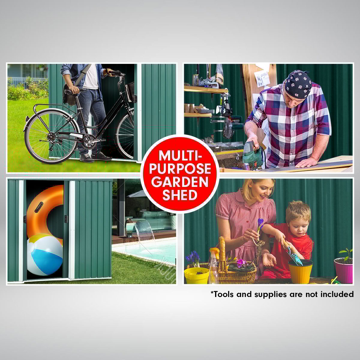 Wallaroo 4ft x 8ft Garden Shed with Base Flat Roof Outdoor Storage - Green