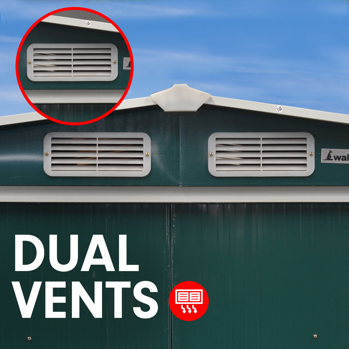 Constructed from galvanized steel and polypropylene this sturdy shed is weather and rust-resistant and designed to withstand the harshest weather elements. It features ventilation vents to let in air and natural light.