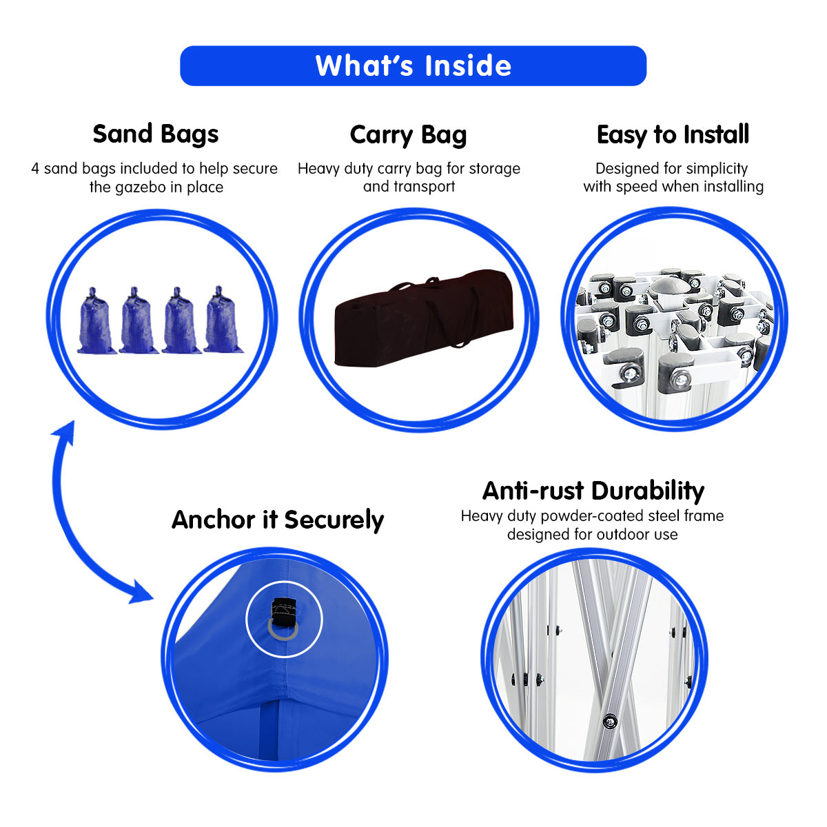 Wallaroo Gazebo Tent Marquee 3x3 PopUp Outdoor- Blue