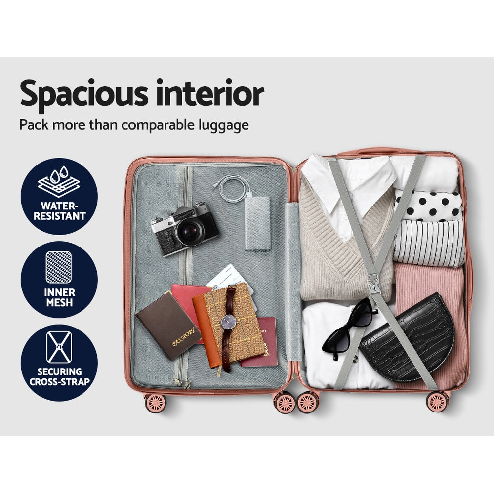 Wanderlite 3pc Luggage 20'' 24'' 28'' Trolley Suitcase Sets Travel TSA Hard Case Lightweight Pink