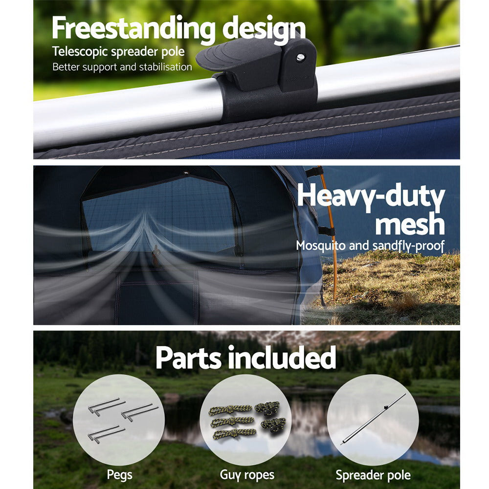 Weisshorn Swag King Single Camping Canvas Free Standing Swags Blue Dome Tent