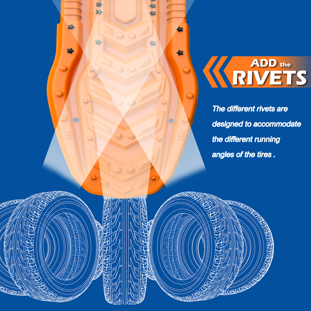 The different rivets are designed to accommodate the different running angles of the tires.