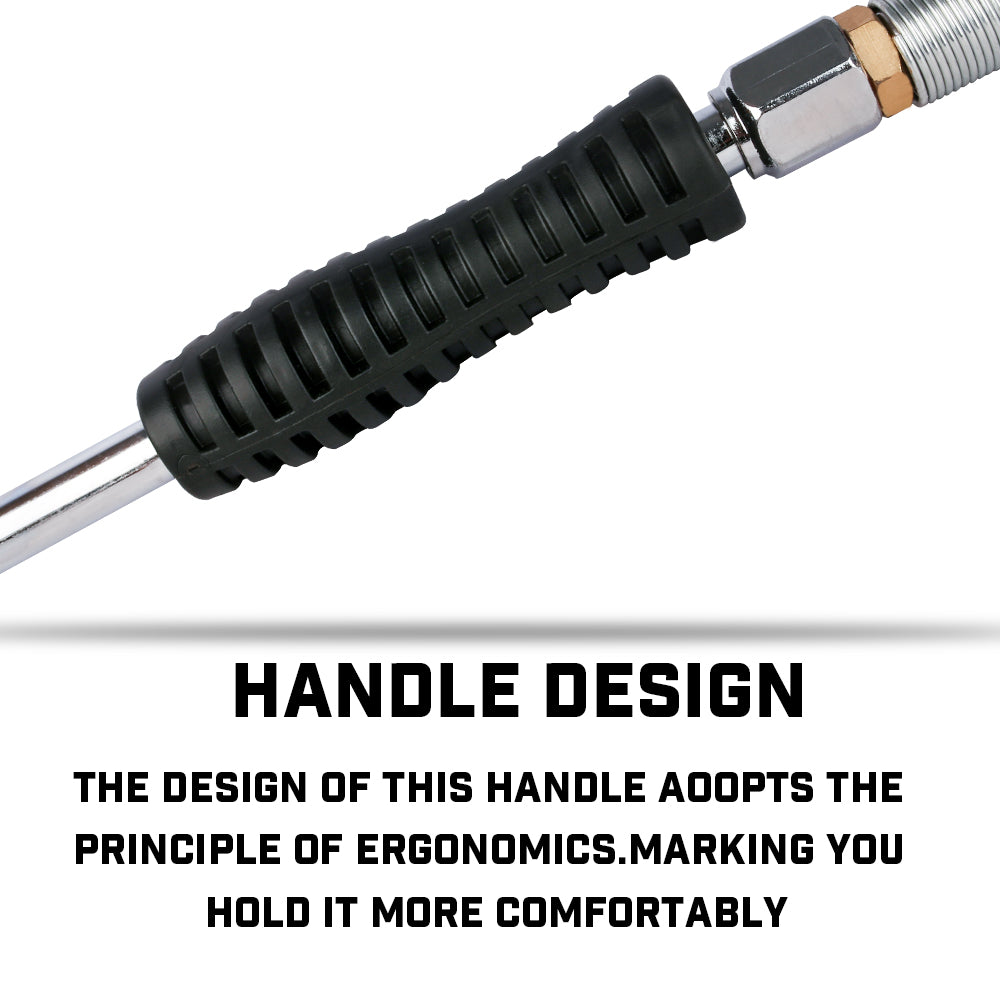 - The design of this handle embodying the principles of ergonomics,making your hand more comfortable, Heavy duty rubber hose protected by flexible spring steel