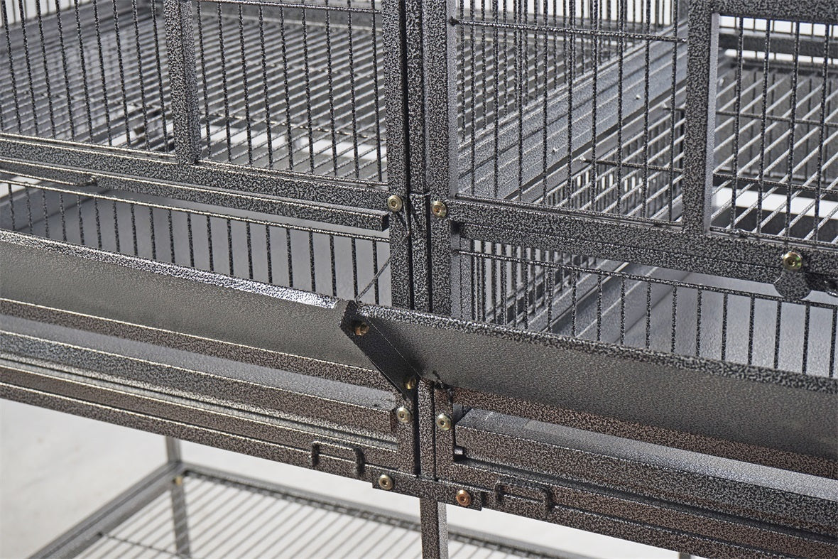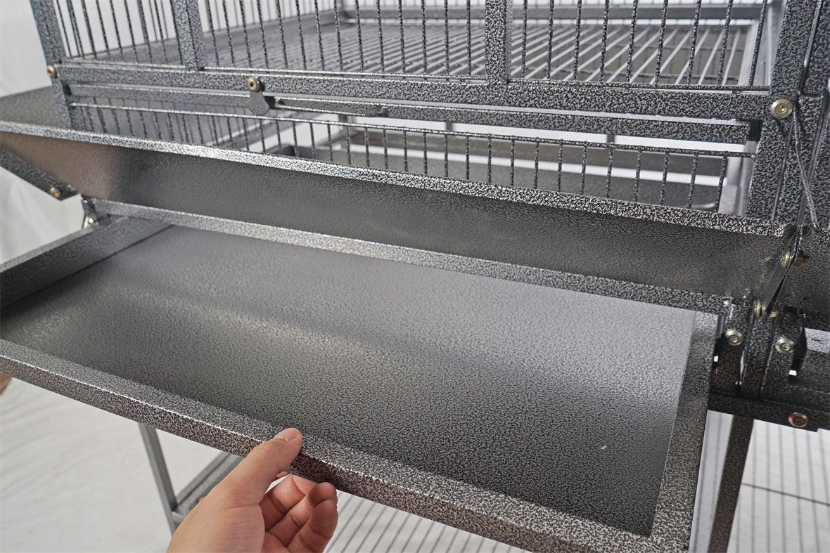 Please note: (1) The measurements of the item may vary by 2-3 cm due to differences in measurement methods and craftsmanship. (2) The cage is not intended for use in wet conditions as exposure to water may result in rust and is not covered under the warranty. (3) Due to its size and weight, the item may not be eligible for home delivery and may require pick-up from the nearest courier depot. For more information, please contact us. (4) The wooden perches are crafted from natural wood and may exhibit natural wood grain and cracks.